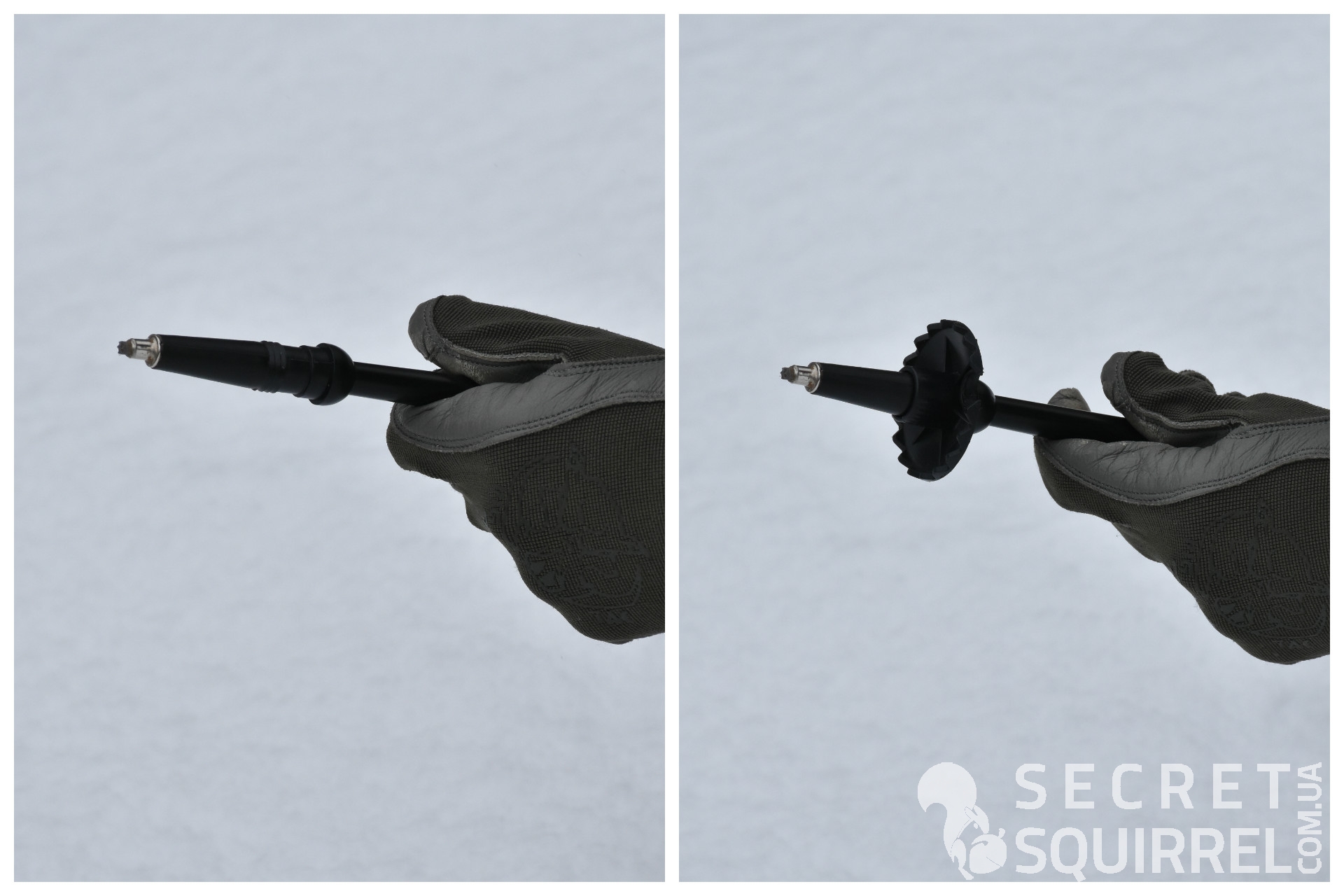 Чуть выше, на пластиковой втулке, удерживающей наконечник, нанесена резьба для присоединения колец. Из-за бюджетности изделия в комплект поставки включены только кольца диаметром 5,5 см., в отличии от более именитых брендов, к палкам которых нередко прилагаются по две-три пары колец, а иногда даже и насадки для скандинавской ходьбы (nordic walking). Нужны эти кольца для передвижения по мягкому грунту, сыпучему песку и неглубокому снегу. Без этих колец наконечники палок уходят слишком глубоко в грунт, а передвижение вперёд сложно назвать комфортным, ведь вы больше тратите силы на то, чтобы выдернуть их назад, чем на ускорение при ходьбе. Несмотря на столь узкое назначение колец, я бы, всё же, рекомендовал использовать их круглый год, иначе вы рискуете сточить или повредить резьбу на втулках ещё до того, как начнётся холодная пора года. А при повреждении резьбы даже при всём своем желании кольца вы уже не накрутите.